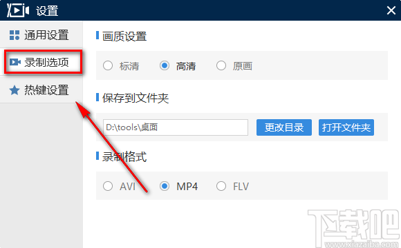 2.在设置页面中,我们找到位于页面左侧的“录制选项”按钮,点击该按钮,页面右侧会出现相应的操作选项。