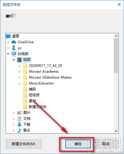 4.在文件保存路径选择页面中,我们选中文件的保存位置后,再点击页面右下角的“确定”按钮即可。