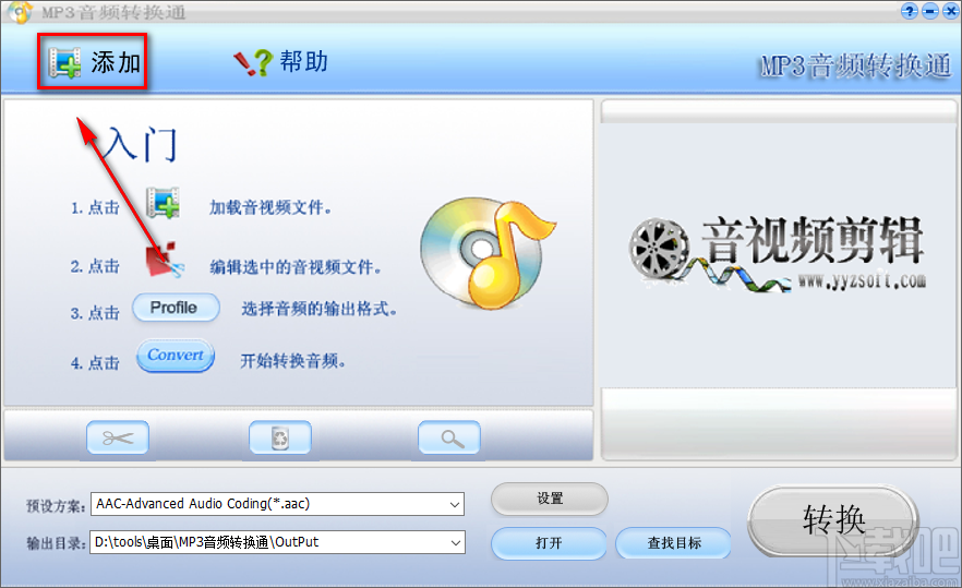1.首先打开软件,在软件界面的左上角找到“添加”按钮,我们点击该按钮进入到文件添加页面。