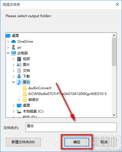 6.在文件保存路径选择页面中,我们选中文件的保存位置后,再点击页面右下角的“确定”按钮即可。
