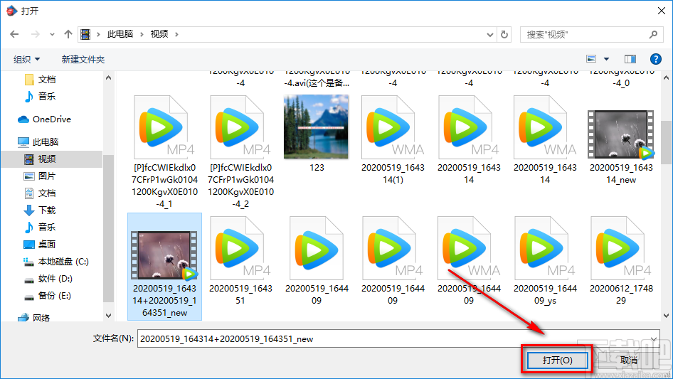 2.在文件添加页面中,我们找到需要添加水印的视频文件后,再点击页面右下角的“打开”按钮即可将文件添加到软件中。