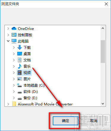 7.在文件保存路径选择页面中,我们选中文件的保存位置后,再点击页面右下角的“确定”按钮即可。