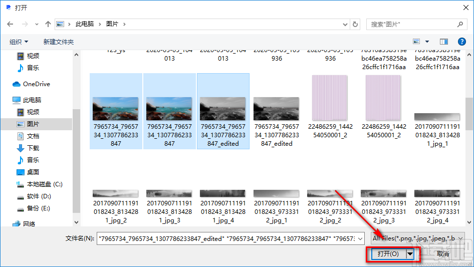 3.在文件添加页面中,我们找到需要转为PDF的图片文件后,再点击页面右下角的“打开”按钮即可将文件添加到软件中。