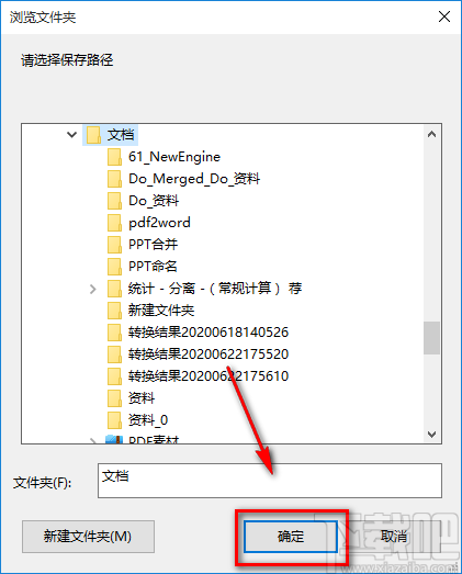 5.在文件保存路径选择页面中,我们选中文件的保存位置后,再点击页面右下角的“确定”按钮即可。