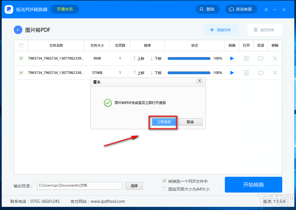 8.文件转换的速度非常快,文件转换完成后,界面上会弹出一个任务完成的提示框,我们可以点击框中的“立即查看”按钮将文件打开并进行查看。