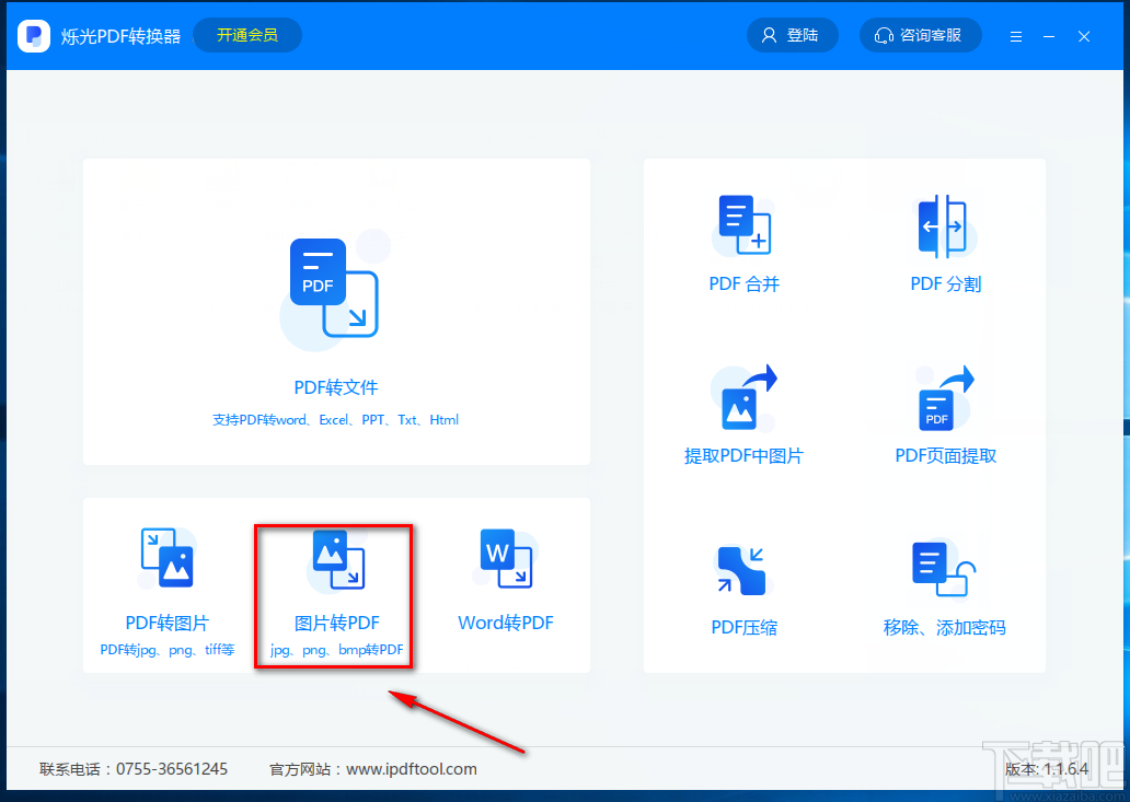 烁光PDF转换器是一款专业实用的多功能PDF转换处理软件,该软件界面简单直观,不仅为用户提供了PDF与多种格式的文件相互转换的功能,还支持PDF文件合并、分割、页面提取等操作,功能十分强大。在生活中我们常常需要将图片转换为PDF格式,比如在文件传输的过程中,为了防止图片的格式与内容遭到破坏,就需要将图片转换为PDF文件再进行传输。这款软件将图片转为PDF文件的方法非常简单,那么接下来小编就给大家详细介绍一下烁光PDF转换器将图片转为PDF文件的具体操作方法,有需要的朋友可以看一看。