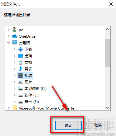 8.在文件保存路径选择页面中,我们选中文件的保存位置后,再点击页面右下角的“确定”按钮即可。