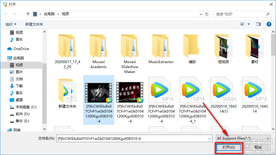 2.在文件添加页面中,我们找到需要剪切的AVI视频后,再点击页面右下角的“打开”按钮即可将文件添加到软件中。