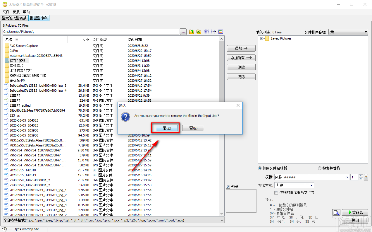 7.紧接着界面上会弹出一个是否确认重命名的提示框,我们点击框中的“是”按钮即可开始文件的重命名工作。
