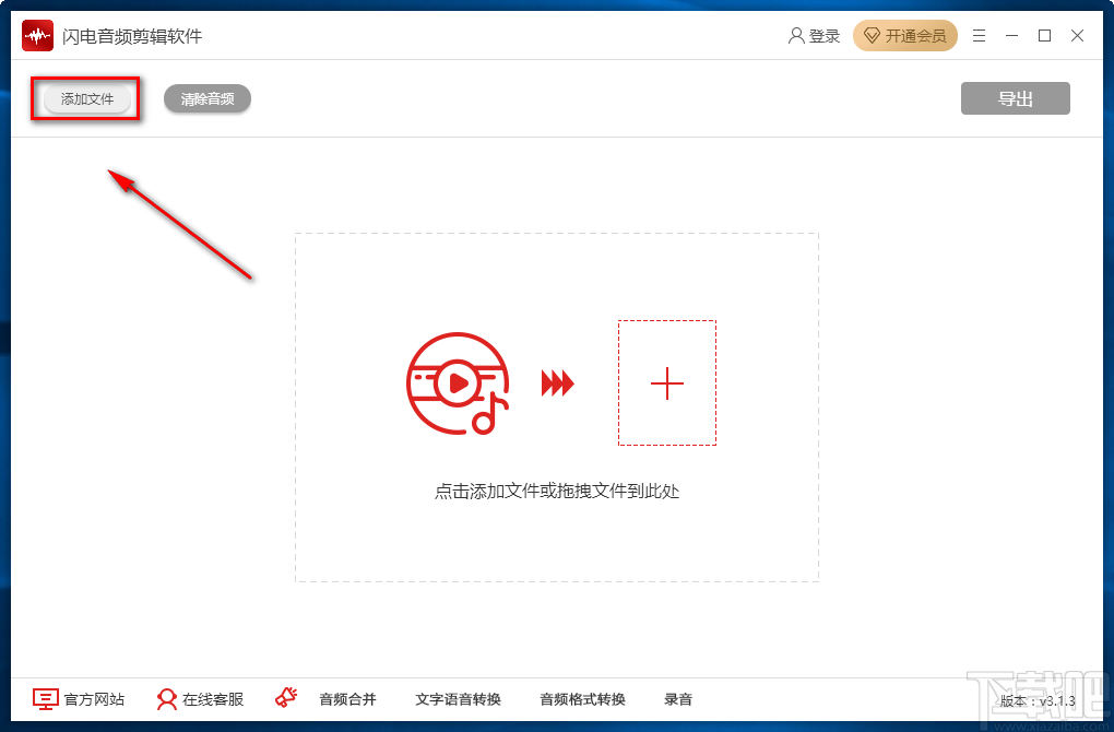 1.首先打开软件,在软件界面的左上角找到“添加文件”按钮,我们点击该按钮进入到文件添加页面。