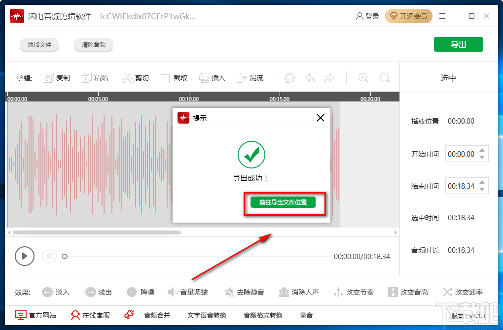 12.最后软件界面上会弹出一个导出成功提示框,我们可以点击框中的“前往导出文件位置”按钮将文件存放目录打开并对文件进行查看。