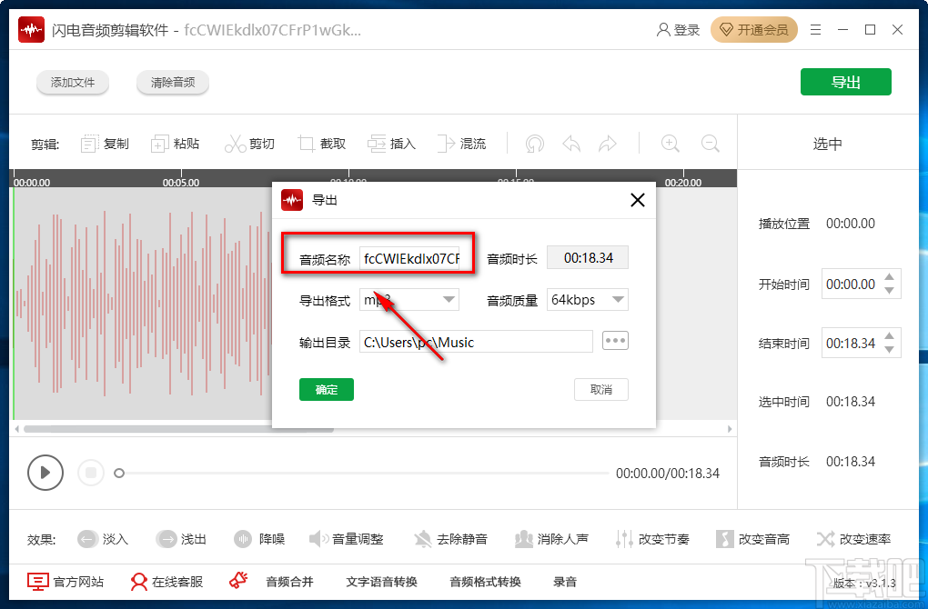 7.在导出窗口中找到“音频名称”选项,我们根据自己的需要在该选项后面的文本框中输入音频名称。