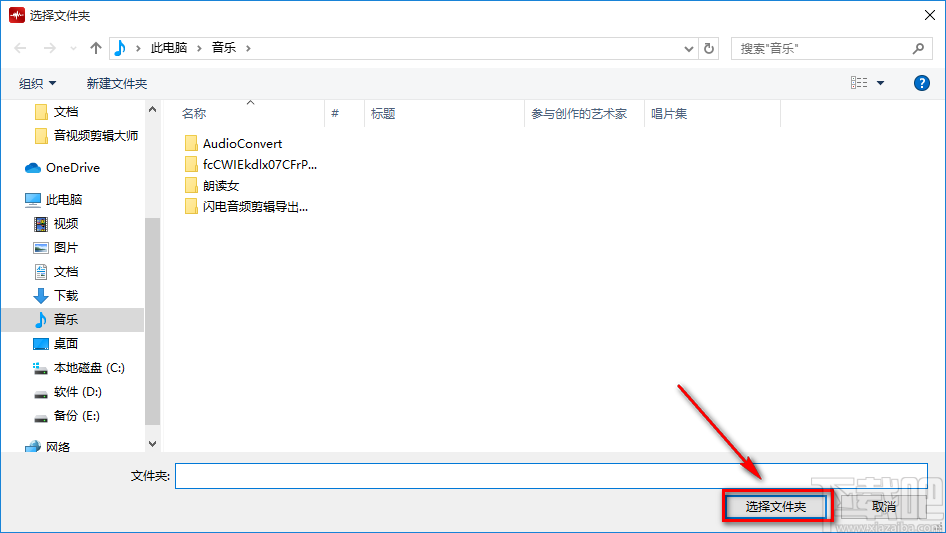 10.在文件保存路径选择页面中,我们选中文件的保存位置后,再点击页面右下角的“选择文件夹”按钮即可。
