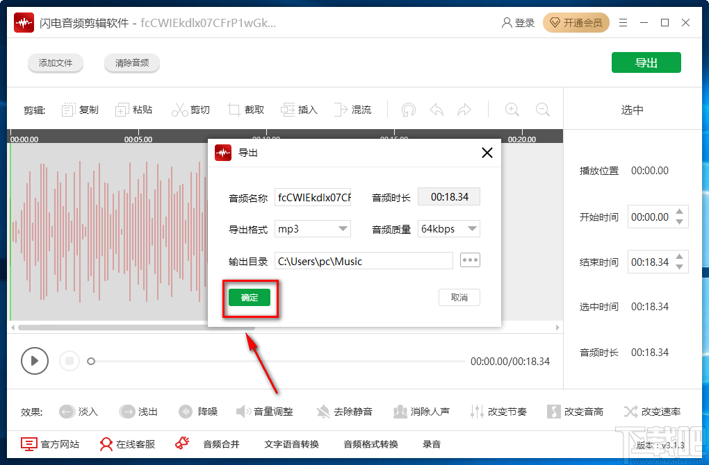 11.完成以上所有步骤后,我们在导出窗口左下角找到绿色的“确定”按钮,点击该按钮就可以将文件成功的导出软件了。