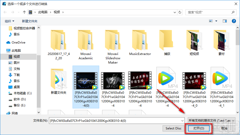 2.在文件添加页面中,我们找到需要裁剪画面的视频文件后,再点击页面右下角的“打开”按钮即可将文件添加到软件中。