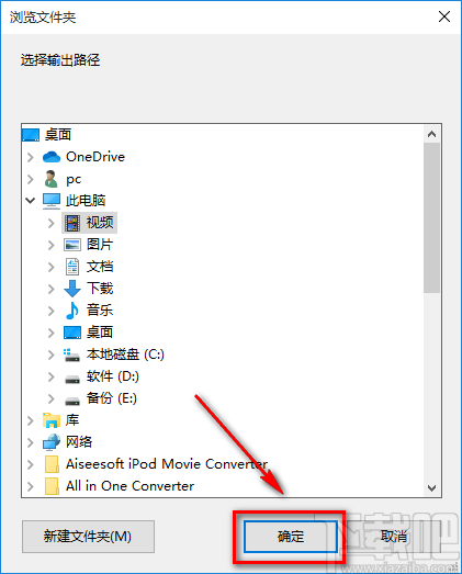 5.在文件保存路径选择页面中,我们选中文件的保存位置后,再点击页面右下角的“确定”按钮即可回到软件界面上。