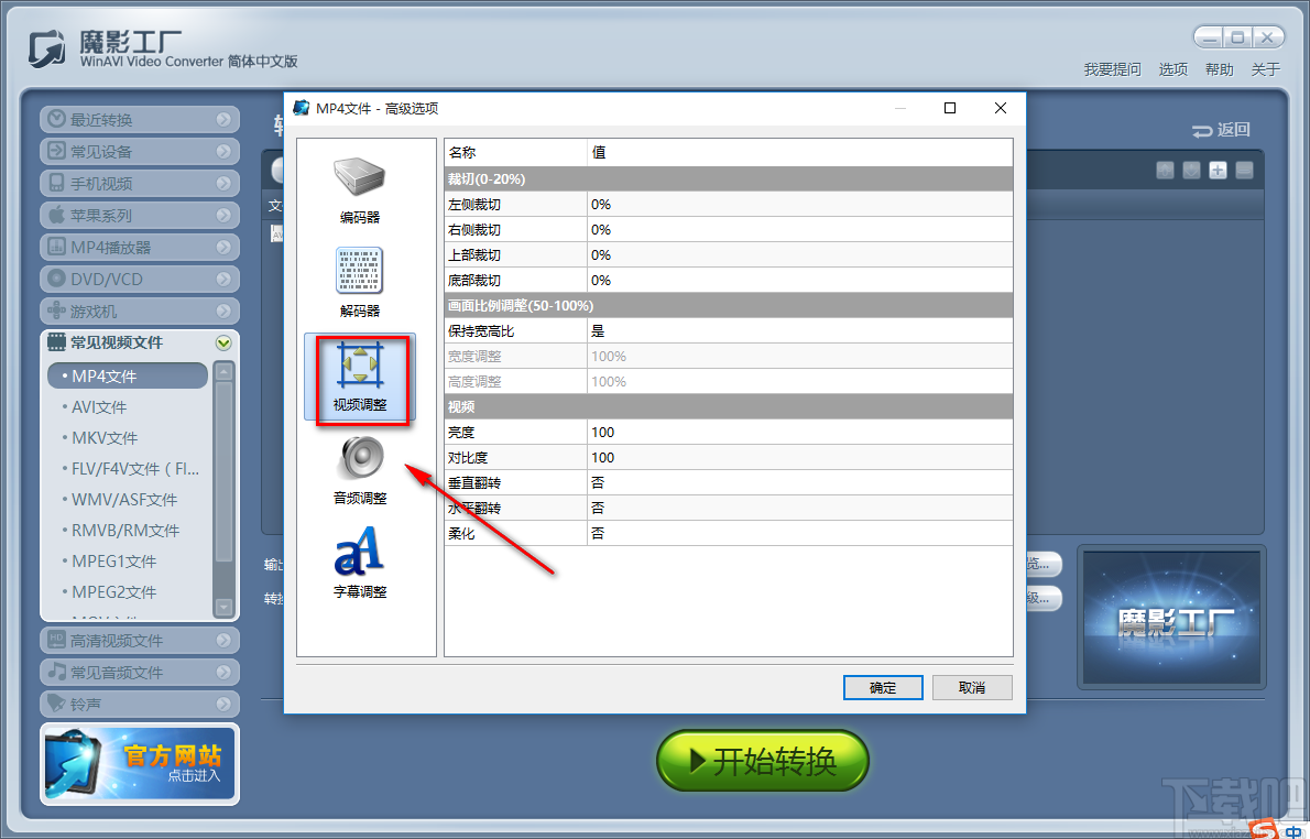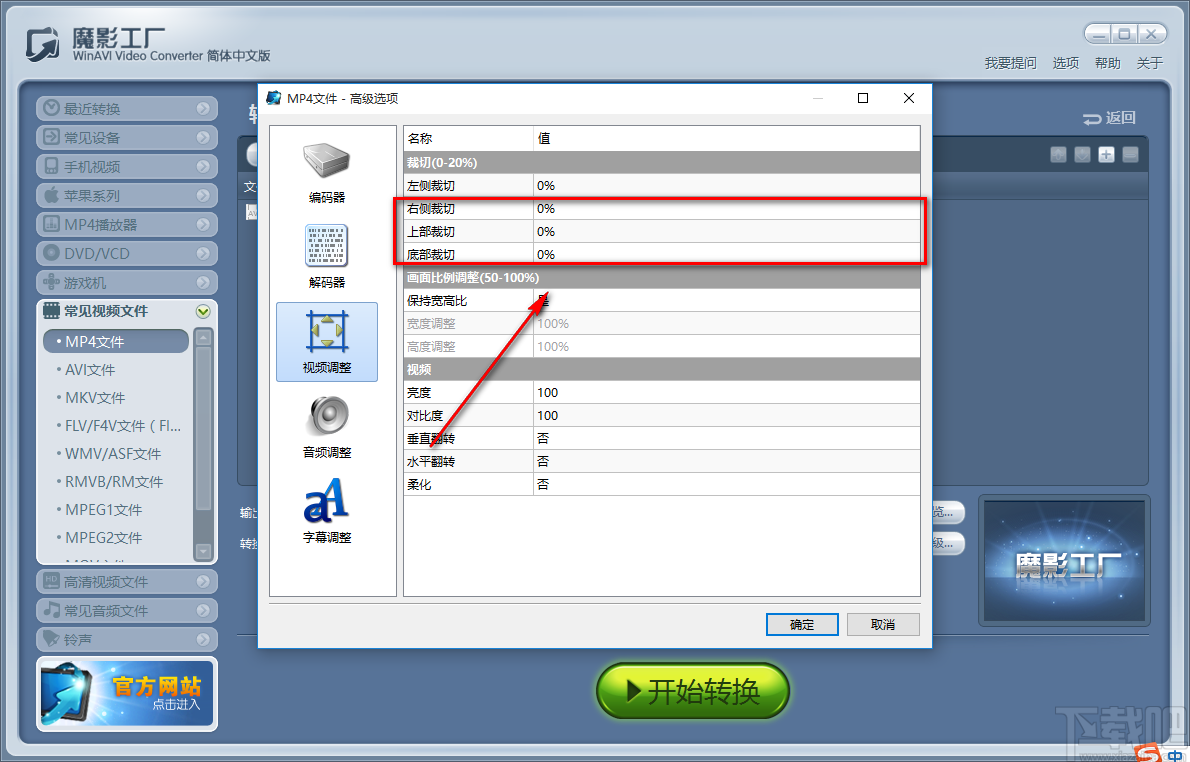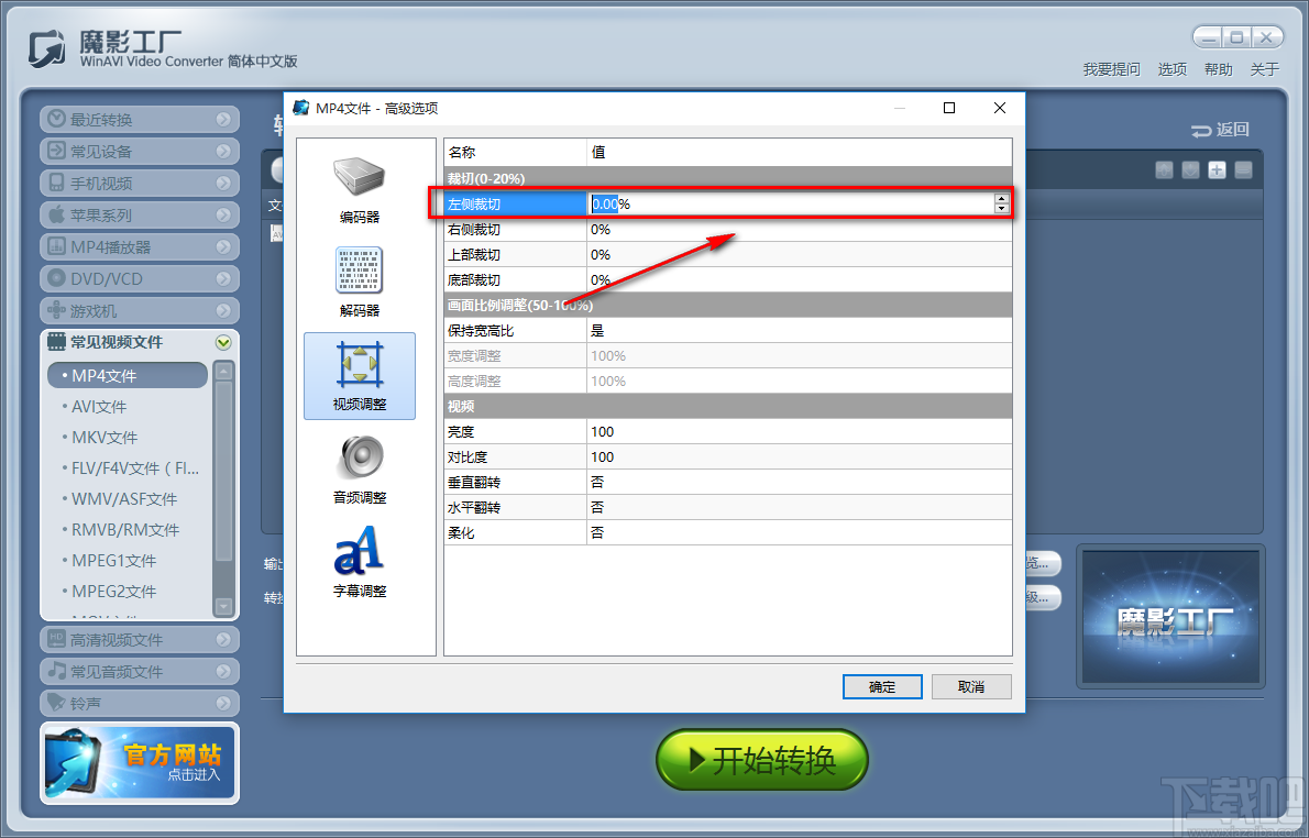 魔影工厂是一款简单实用的全能格式转换软件,该软件界面直观友好,不仅可以将多种格式的视频相互转换,还可以对视频进行画面调整、音频调整以及字幕调整,功能十分强大。我们在制作视频时,有时候视频画面中有的部分不太适合出现在视频中,这种情况下我们就可以对视频画面进行裁剪。这款软件裁剪视频画面的方法非常简单,只需要将视频添加到软件中就可以快速对视频画面进行裁剪。那么接下来小编就给大家详细介绍一下魔影工厂裁剪视频画面的具体操作方法,有需要的朋友可以看一看。