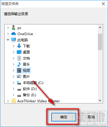 8.在文件保存路径选择页面中,我们选中文件的保存位置后,再点击页面右下角的“确定”按钮即可。