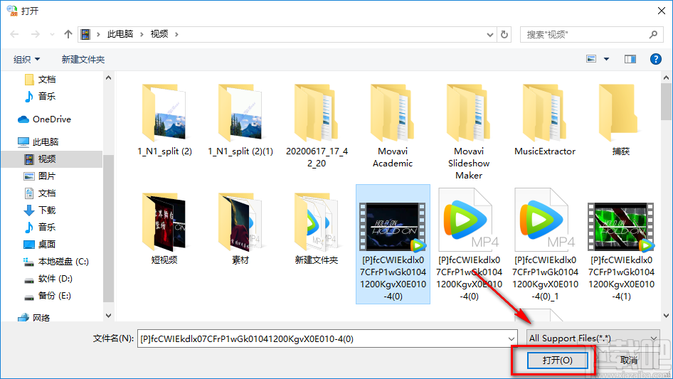 2.在文件添加页面中,我们找到需要添加镜像效果的AVI视频文件后,再点击页面右下角的“打开”按钮即可将视频添加到软件中。