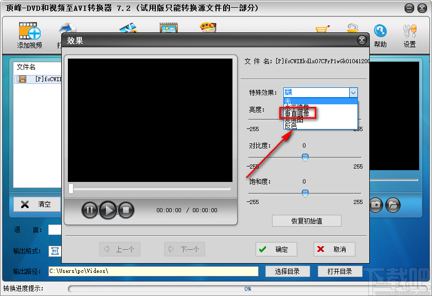 顶峰DVD和视频至AVI转换器是一款操作便捷且功能强大的AVI视频转换软件,该软件可以将DVD和多种格式的视频转换为AVI视频以及多种格式的音频,同时可以对AVI视频进行其他的操作,包括视频剪切、添加效果等。看过盗梦空间这部电影的小伙伴都知道,电影情节中有垂直镜像的画面,这给人制造出一种奇妙的观看感受。其实我们自己也可以制作这样的视频,运用这款软件就可以做到。那么接下来小编就给大家详细介绍一下顶峰DVD和视频至AVI转换器给AVI视频添加垂直镜像效果的具体操作方法,有需要的朋友可以看一看。