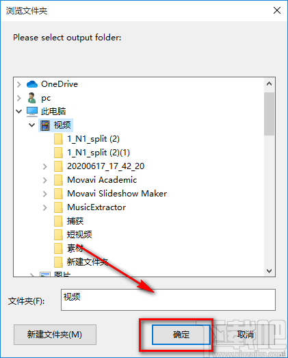 8.在输出目录选择页面中,我们选中文件的保存位置后,再点击页面右下角的“确定”按钮即可。
