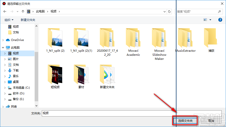 2.在文件保存路径选择页面中,我们找到录屏文件的保存位置后,再点击页面右下角的“选择文件夹”按钮即可。