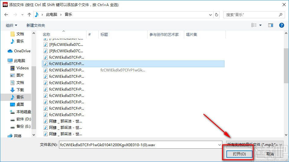 2.在文件添加页面中,我们找到需要转换格式的WAV音频文件后,再点击页面右下角的“打开”按钮即可将文件添加到软件中。
