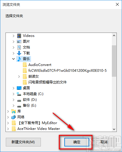 6.在文件保存路径选择页面中,我们选中文件的保存位置后,再点击页面右下角的“确定”按钮即可。