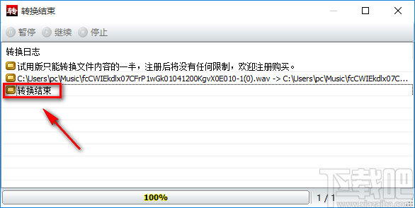 8.音频格式的转换速度非常快,转换任务完成后,界面上会弹出一个转换结束的提示框,我们可以在框中看到“转换结束”的提醒字样。