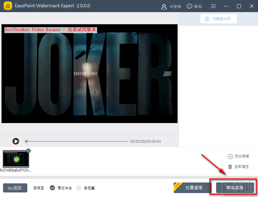 8.完成以上所有步骤后,我们在页面右下角找到“开始处理”按钮,点击该按钮就可以开始给视频去除水印。