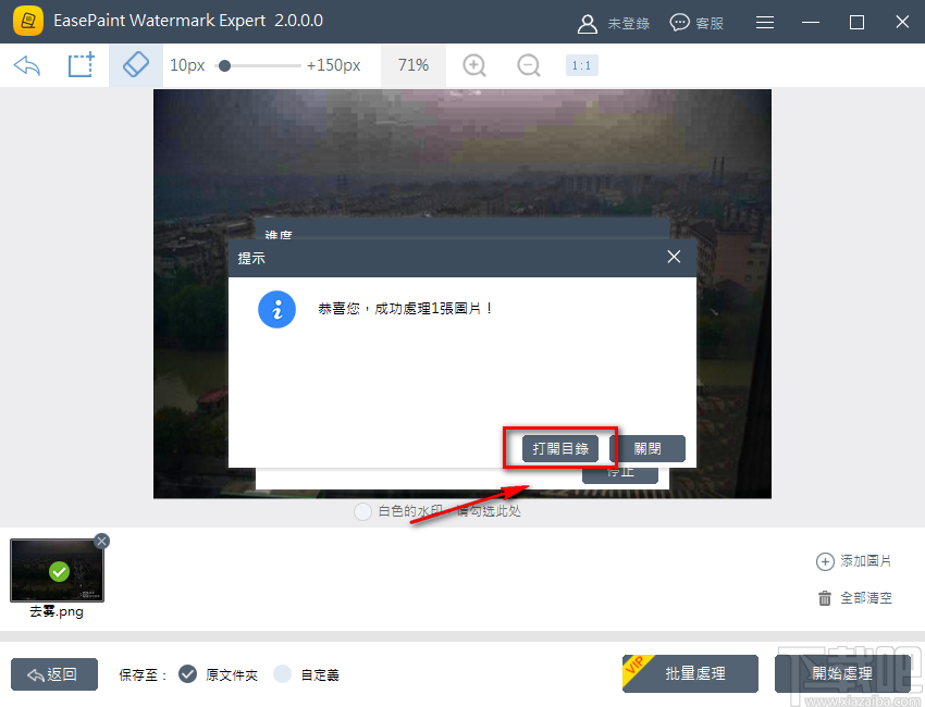 7.最后界面上会弹出一个成功处理图片的提示框,我们可以点击框中的“打开目录”按钮将存放目录打开并对文件进行查看。