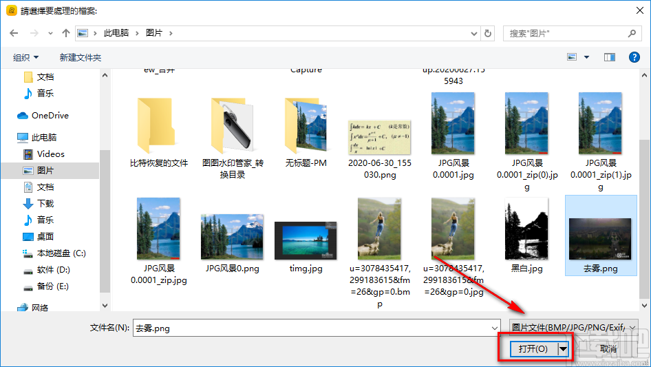 3.在文件添加页面中,我们找到需要去除水印的图片文件后,再点击页面右下角的“打开”按钮即可将文件添加到软件中。