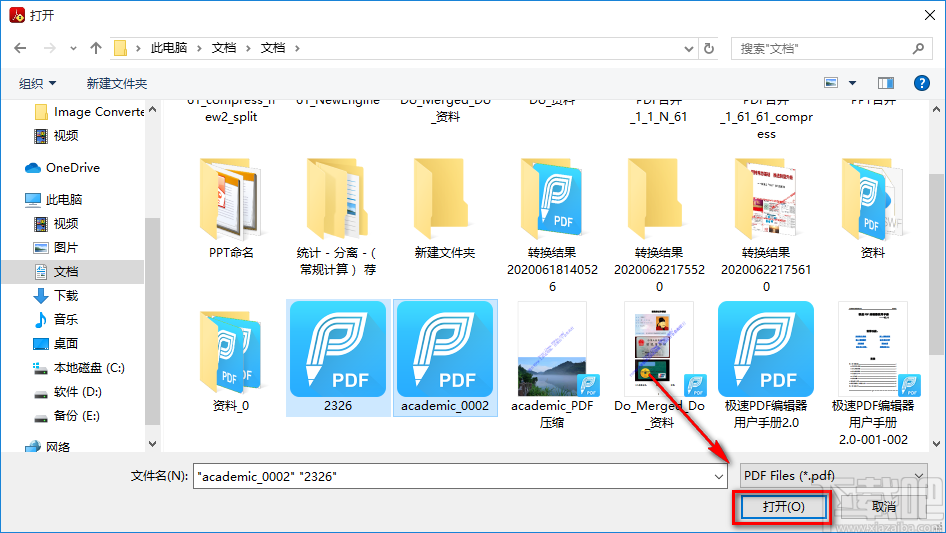 2.在文件添加页面中,我们找到需要合并的PDF文件后,再点击页面右下角的“打开”按钮即可将文件添加到软件中。