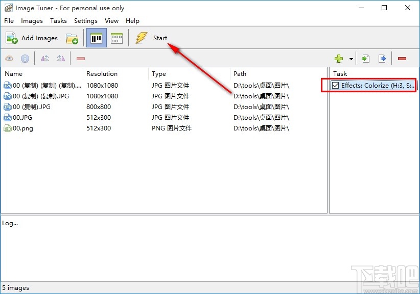 6.保存参数设置之后,就保存这个色调调整的任务了,我们在主界面的任务列表可以看到,最后点击上方的Start这个开始按钮即可开始处理调整图片色调。