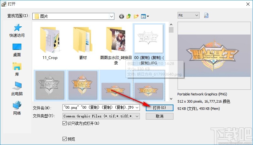 2.点击添加图片按钮之后,下一步在出现的选择文件界面中,选中想要处理的图像之后点击打开按钮即可。