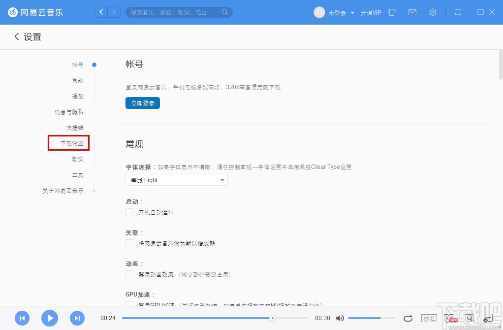 2.点击这个设置图标之后,我们就会进入到软件的设置界面了,这时我们需要点击设置界面左边的下载设置选项。