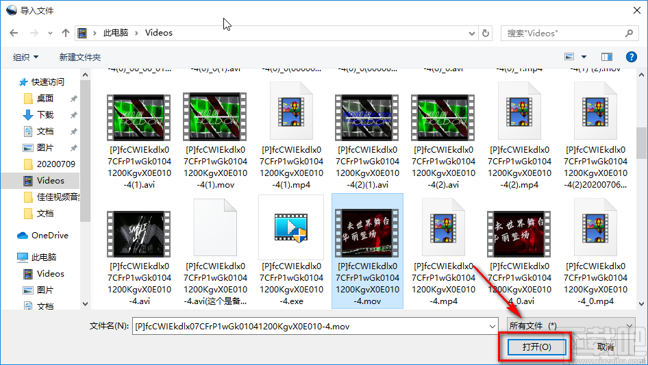 2.在文件添加页面中,我们找到需要分割的视频文件后,再点击页面右下角的“打开”按钮即可将文件添加到软件中。