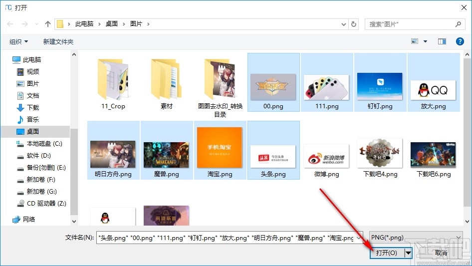 2.点击这个添加文件图标之后,就会打开一个选择文件的界面,选中所有需要压缩的图像之后点击打开按钮。