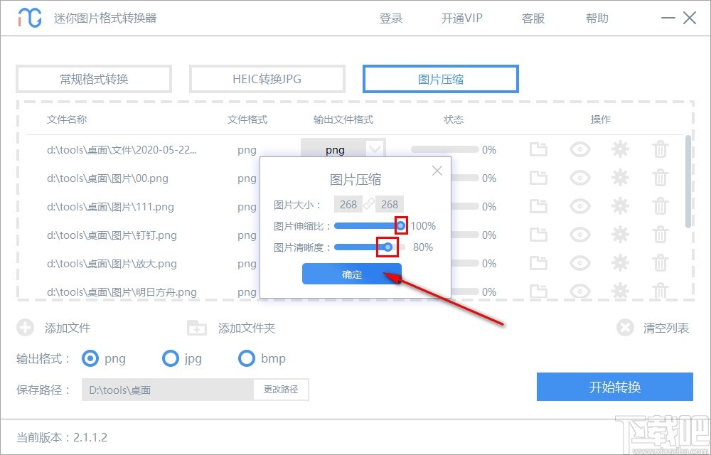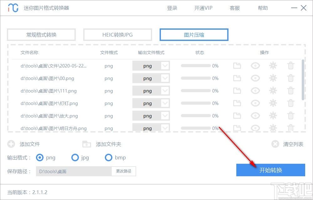 6.设置好输出路径之后,最后一步点击界面右下角的开始转换按钮就可以开始批量压缩图片的操作了,等待压缩操作完成即可。
