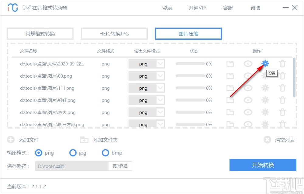 3.将图像都添加到软件界面之后,我们点击界面右边操作的设置图标,如下图中所示,点击即可打开压缩设置界面。