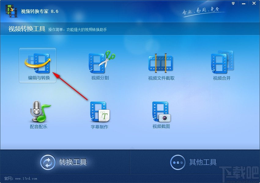 1.首先第一步我们打开软件之后,在界面中找到编辑与转换这个功能点击进去,进入到编辑视频的界面。