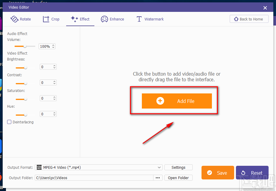 2.在效果页面的右侧,可以找到一个黄色的“Add File”按钮,我们点击该按钮进入到文件添加页面。