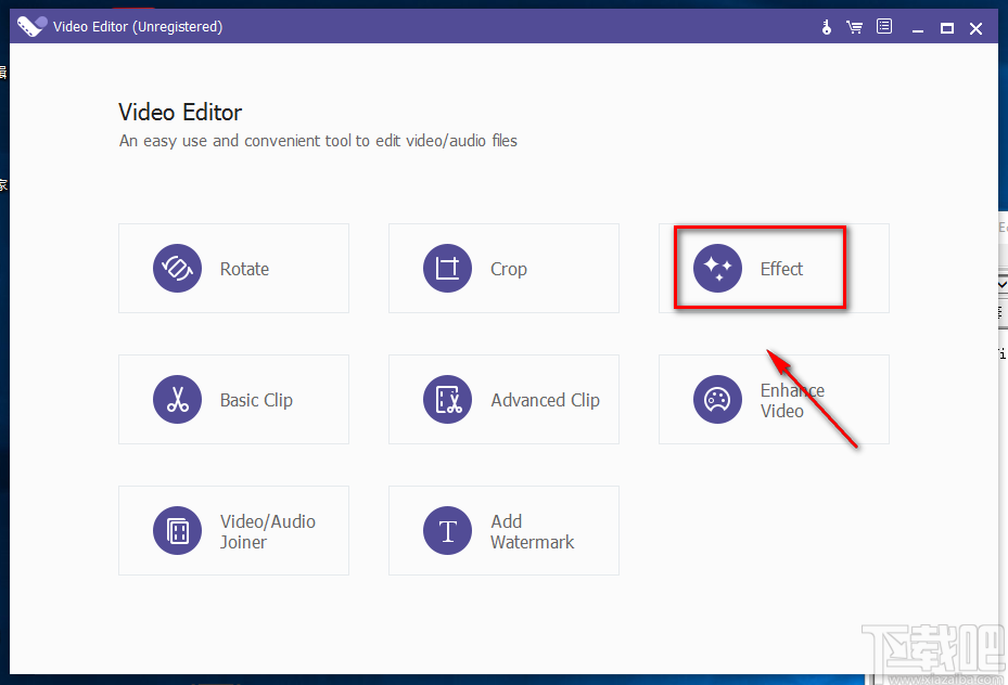 1.首先打开软件,在软件界面上找到“Effect”选项,该选项表示效果的意思,我们点击该选项可以进入到效果页面。