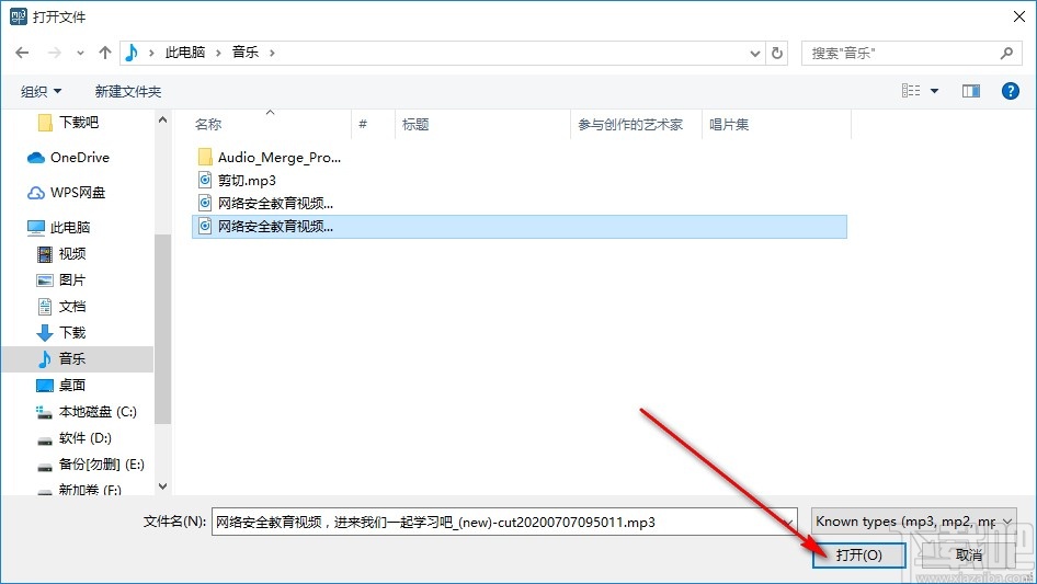 2.打开选择文件的界面之后我们在界面中选中想要剪切的音频文件,然后点击右下角的打开按钮。