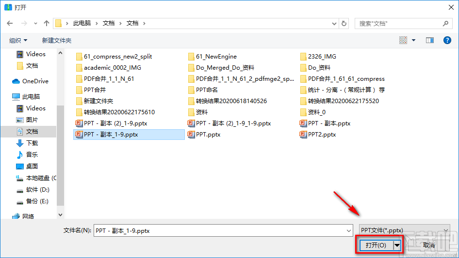 3.在文件添加页面中,我们找到需要压缩的PPT文件后,再点击页面右下角的“打开”按钮即可将文件添加到软件中。