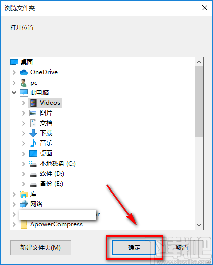 9.在文件保存路径选择页面中,我们选中文件的保存位置后,再点击页面右下角的“确定”按钮即可。
