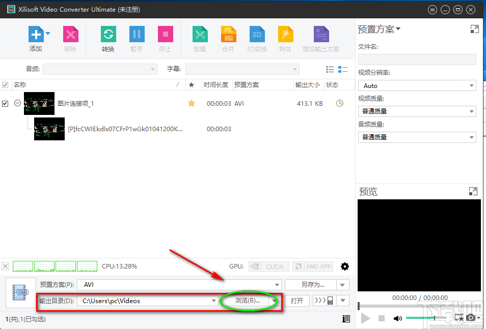8.接下来回到软件界面上,在界面左下角找到“输出目录”选项,该选项后面有一个“浏览”按钮,我们点击该按钮就可以进入到文件保存路径选择页面。