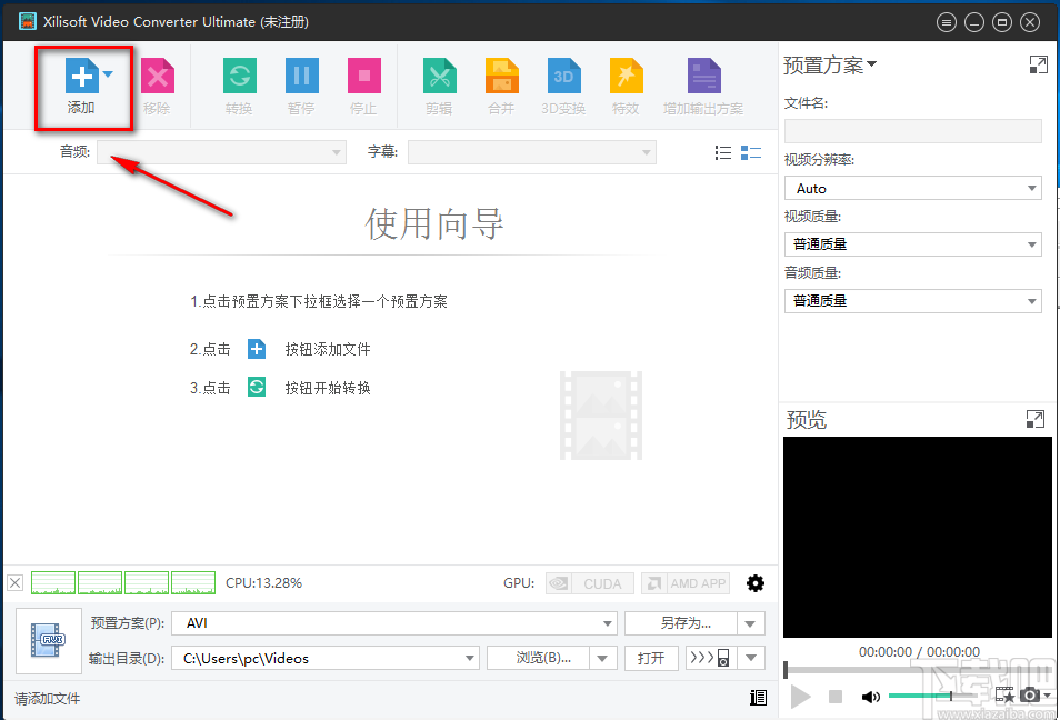 1.首先打开软件,在软件界面的左上角找到“添加”按钮,我们点击该按钮进入到文件添加页面。