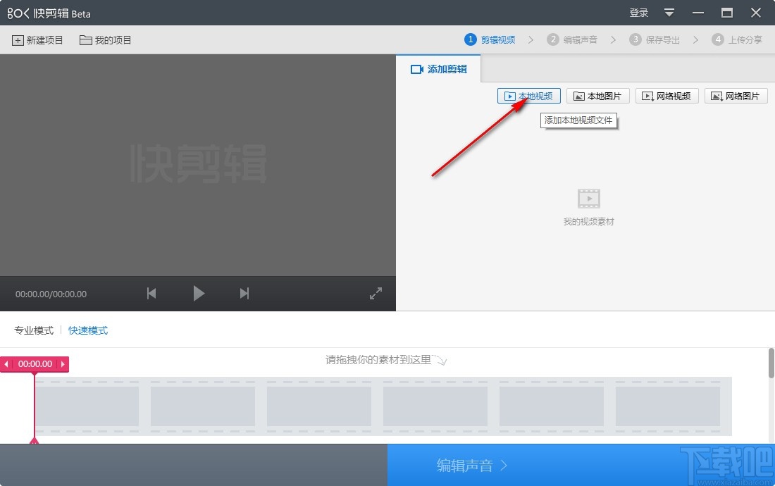 1.首先第一步我们打开软件之后,在软件界面中点击本地视频按钮,点击之后准备添加需要处理的视频文件。
