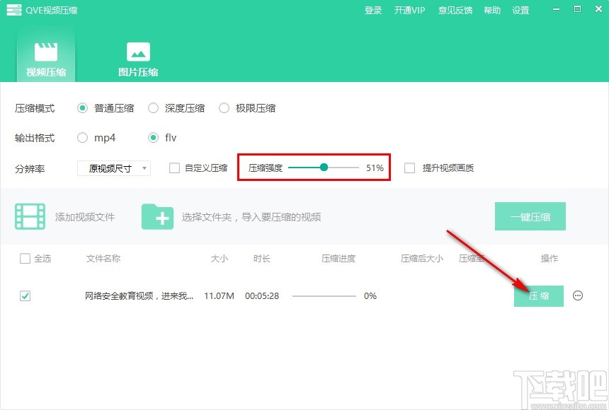 6.调整好压缩强度之后,我们在界面下方的视频列表中,点击视频选项右边的压缩按钮即可开始压缩视频的操作。